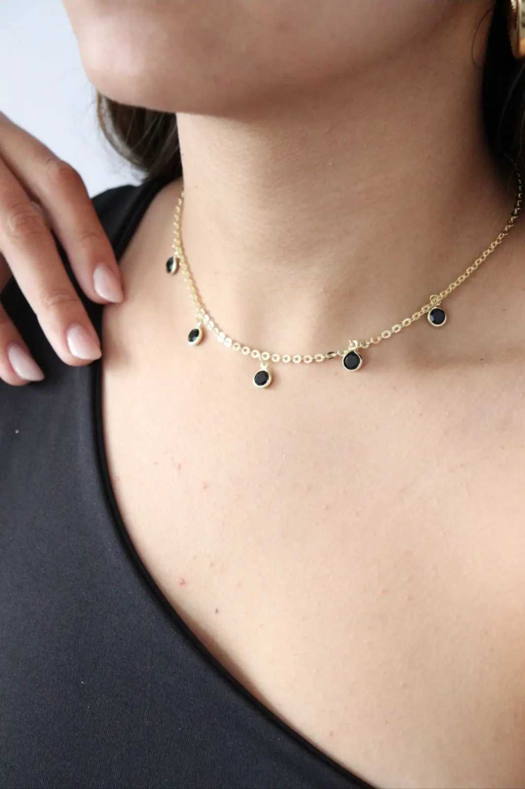 Choker obsidian dourado