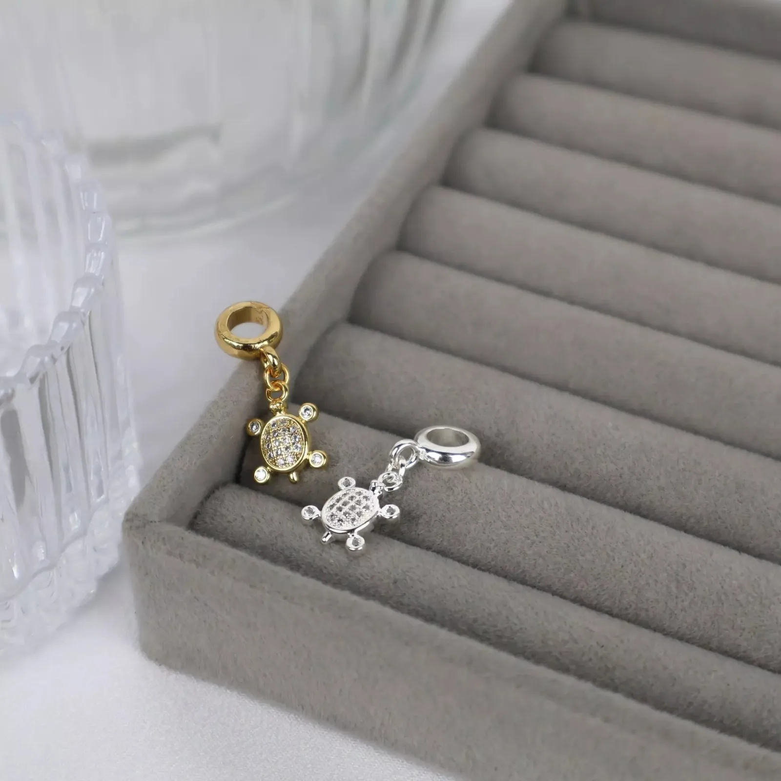 Berloque Pingente Tartaruga Zircônia - Dourado