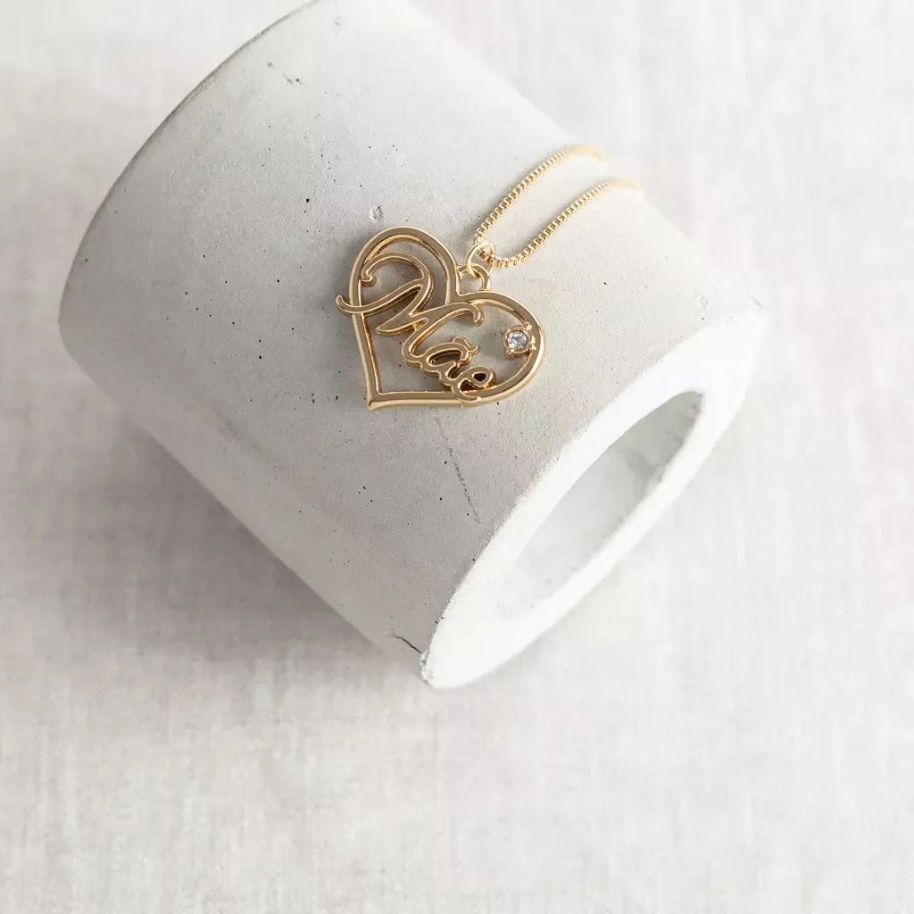 Colar Médio Coração Mãe Zircônias - Dourado
