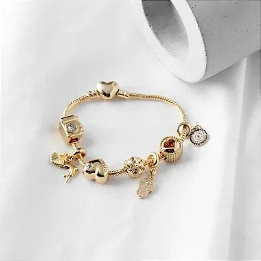 Pulseira Berloque Fecho Coração - Dourado