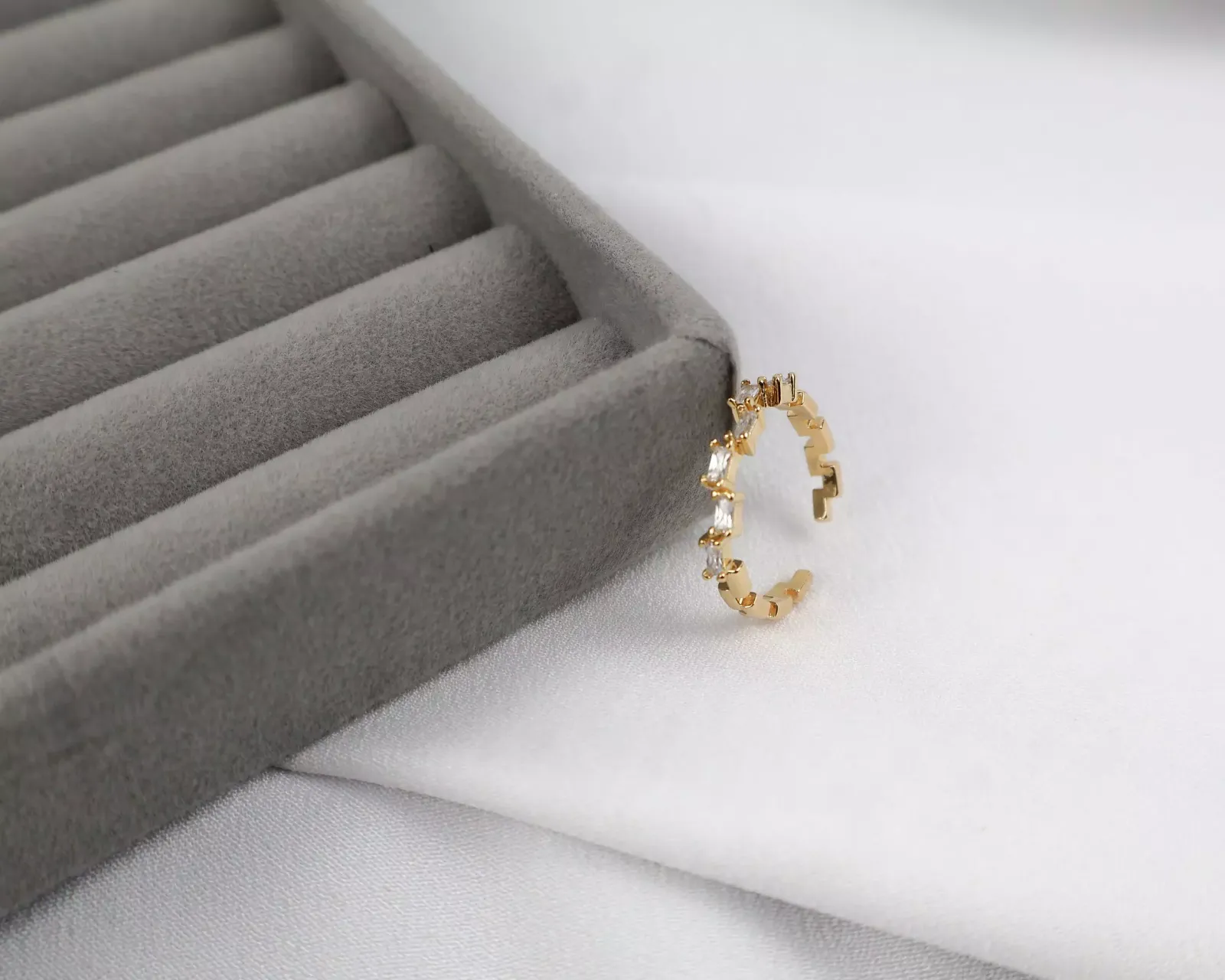 Anel Regulável Cravejado Zircônias Baguete - Dourado
