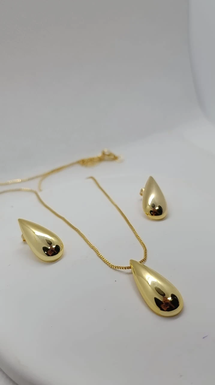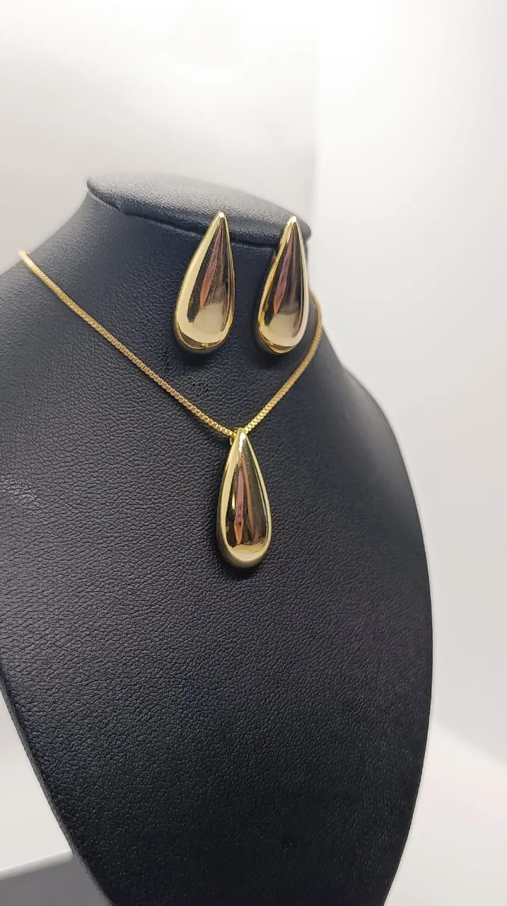 Conjunto Colar e Brincos Gota - Dourado